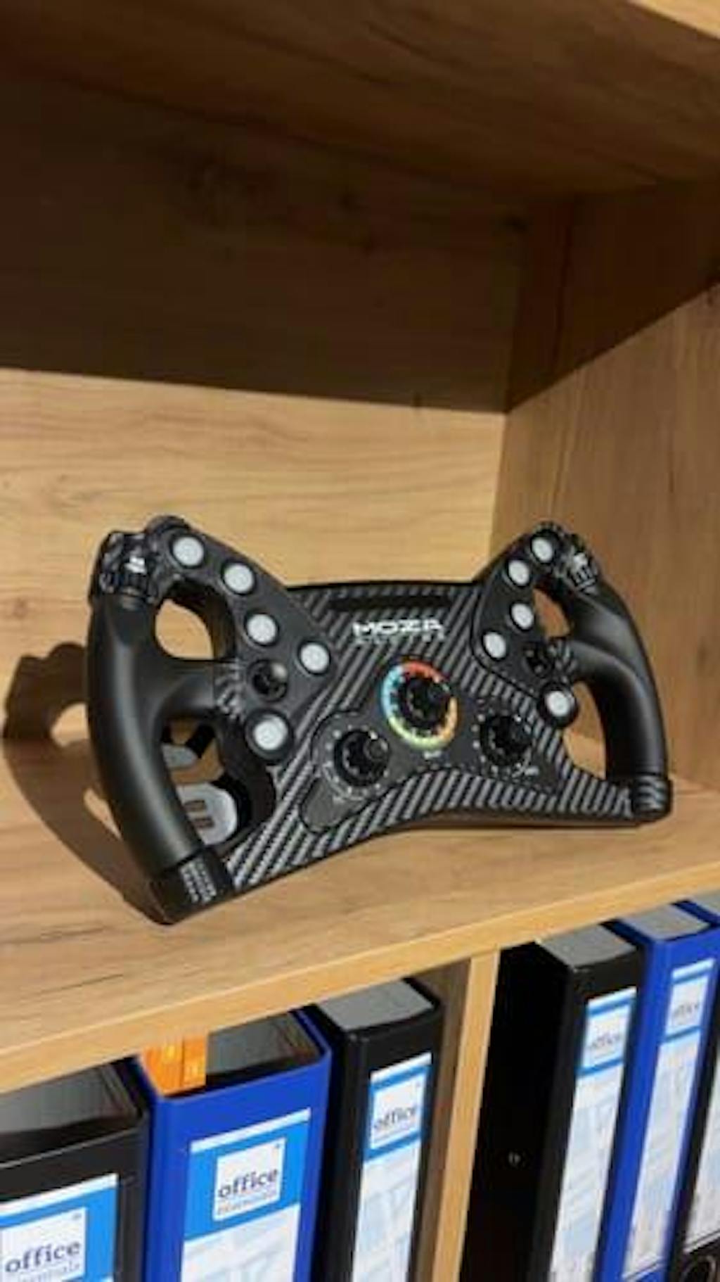 The MOZA KS Steering Wheel offers advanced features and design crafted specifically for professional-grade sim racing. With a sleek 300mm butterfly-style GT design and carbon fiber-reinforced construction, it provides racers with the stability, durability, and realistic feel necessary to handle high-speed, high-intensity races. This lightweight wheel boasts programmable RGB buttons, magnetic shifter paddles with dual clutch capability, and full compatibility across all MOZA wheelbases and 3rd party wheelbases via PC. Ergonomically designed with TPE rubber grips and a user-friendly control suite, the KS Steering Wheel brings pro-level racing control to your fingertips.