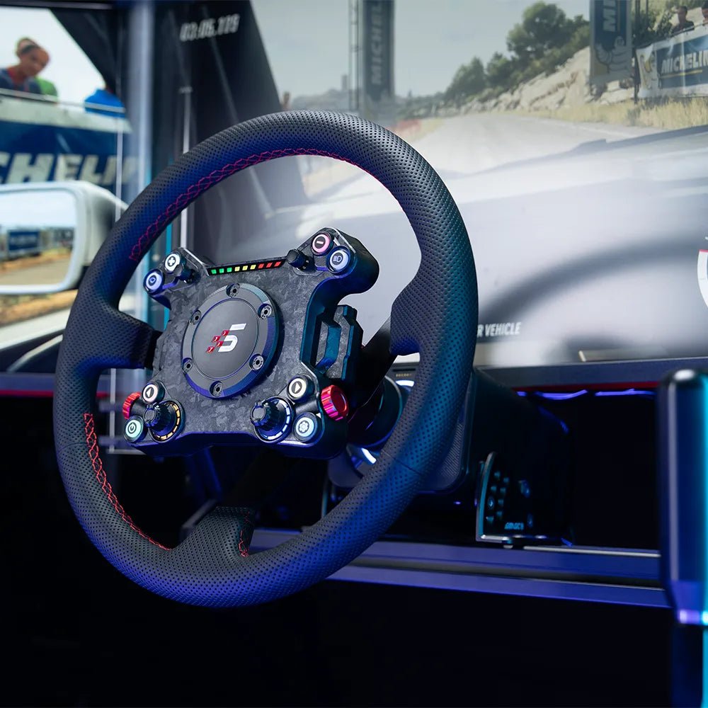 This wheel is part of the new Neo X hub platform, which delivers an advanced and responsive control experience. The hub includes 8 customizable RGB buttons, 2 thumb encoders, and 2 seven-way switches, all strategically placed for easy thumb access. The ultra-short travel and 500g actuation force of the buttons prevent accidental presses, ensuring precise control. The wireless 2.4G WiFi and USB connectivity make it compatible with Simagic wheelbases, while an optional Maglink cable allows for use with third-party direct drive bases. The wheel's programmable RGB rev light bar and 12 LED encoders provide clear, customizable telemetry feedback.